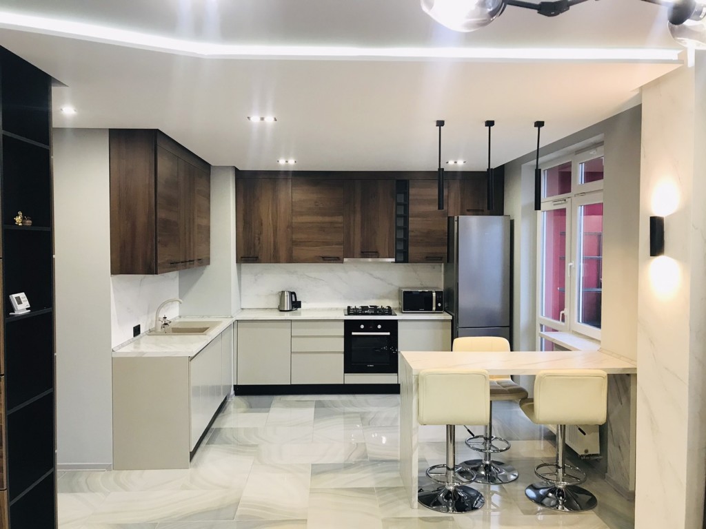 Квартира з дизайнерським ремонтом, все продумано до найменших дрібниць. Простора та світла квартира з кухнею-стідіо.