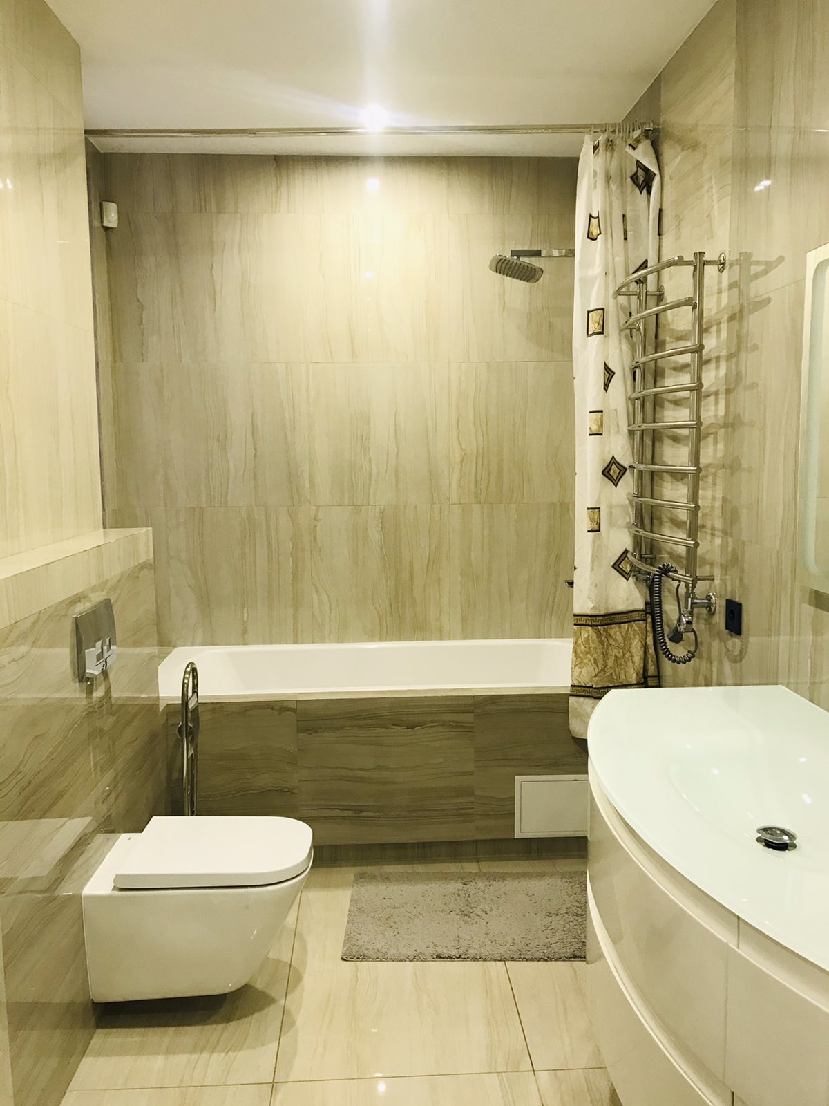 Вся побутова техніка, ІО, обігрів підлоги у всій квартирі. Два санвузли, гардеробна, розкладний диван та двоспальне ліжко.
