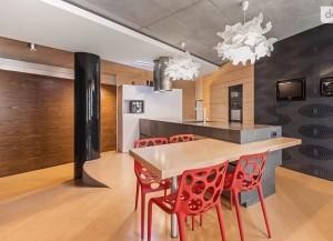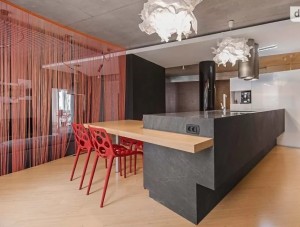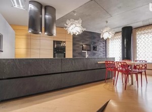 В кухне мраморная столешница, встроенная техника.