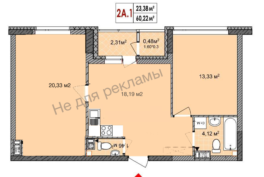 Загальна площа: 60 кв.м
