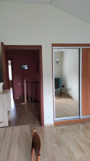 На втором этаже большая гостиная с кухней, общей площадью 62кв.м, отдельный сан. узел, душевая кабина и французский балкон.