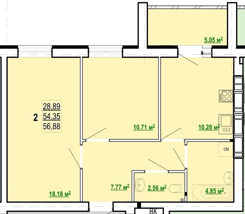Загальна площа: 57 кв.м