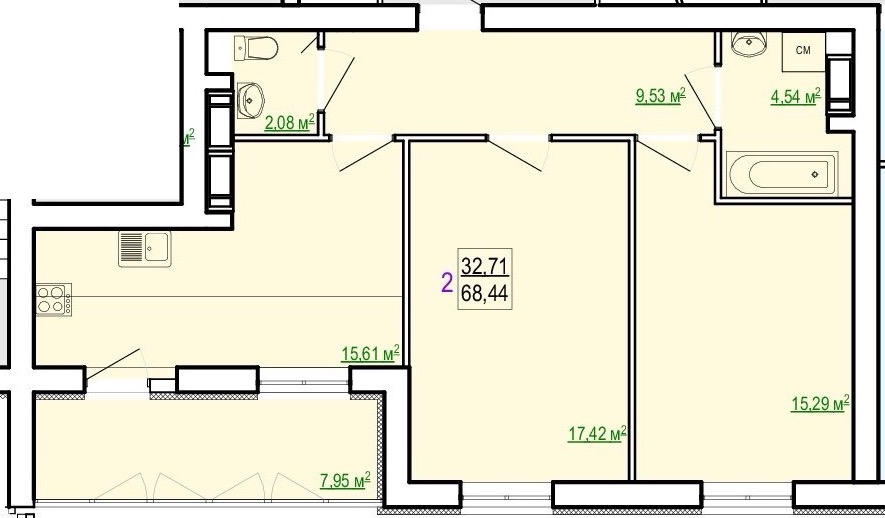 Загальна площа: 68.44 кв.м
