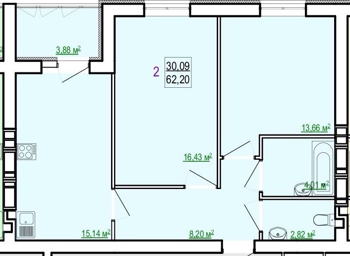 Загальна площа: 62.2 кв.м