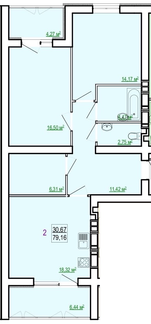 Загальна площа: 79.16 кв.м