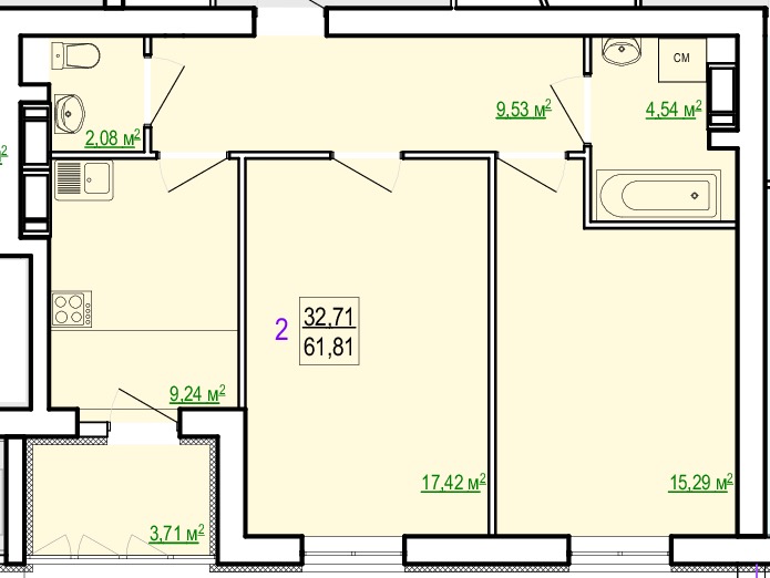 Загальна площа: 61.81 кв.м