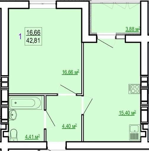 Загальна площа: 42.81 кв.м