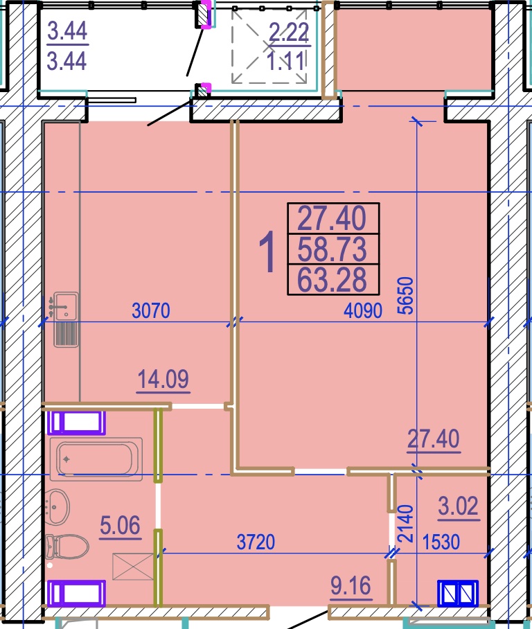 Загальна площа: 63.28 кв.м