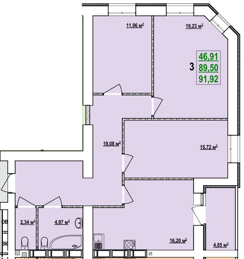 Загальна площа: 91.92 кв.м