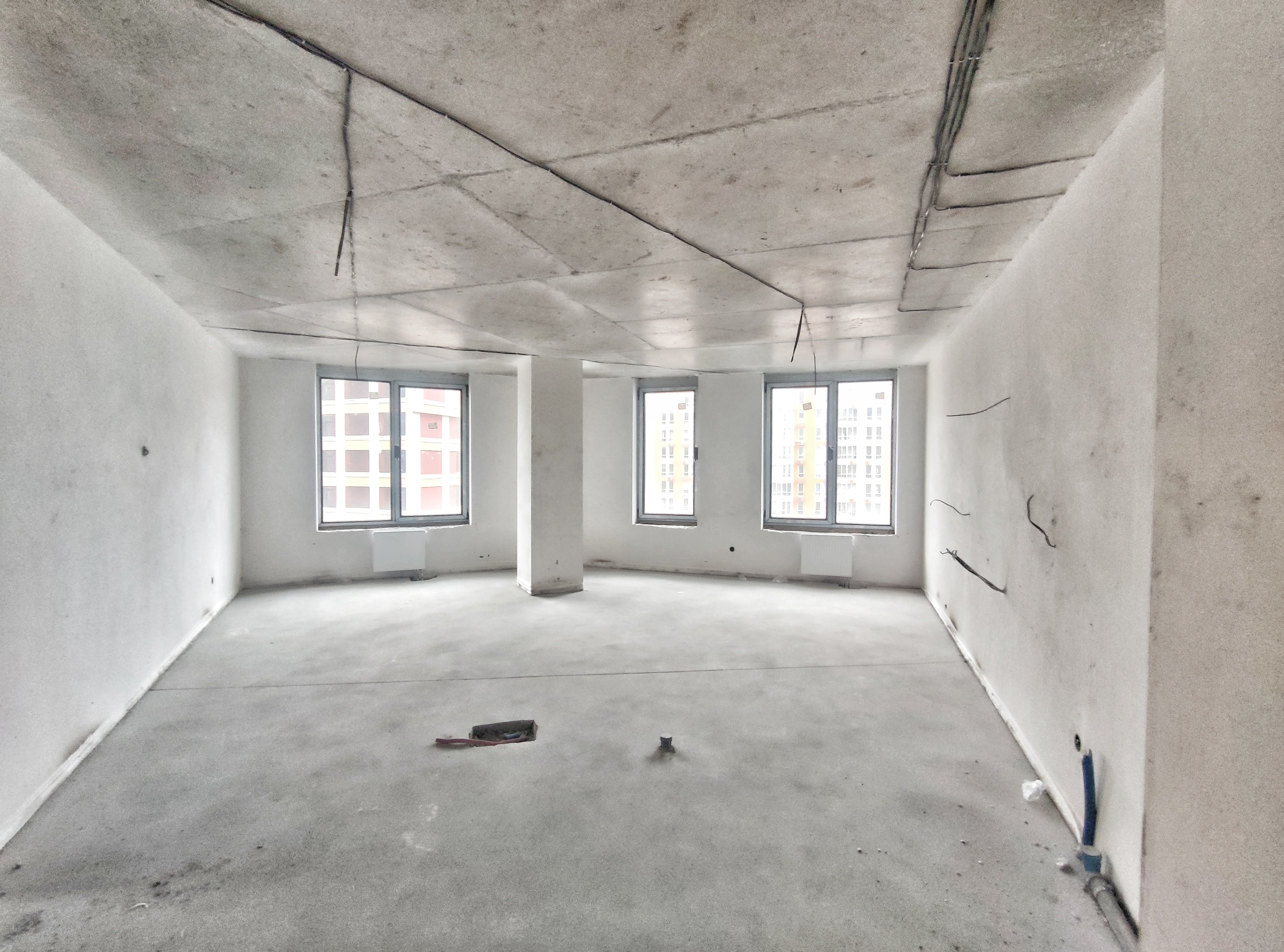 Общий метраж– 101.4 кв.м. 2 раздельные комнаты и просторная кухня-гостиная, 2 сан.узла, 1 балкон. Видовой 13-й этаж. Квартира – после строителей. Но уже сделана стяжка на полу и стенах, електро-разводка!! Уже можно заходить на ремонт. Установлены счетчики на тепло, воду, электричество.