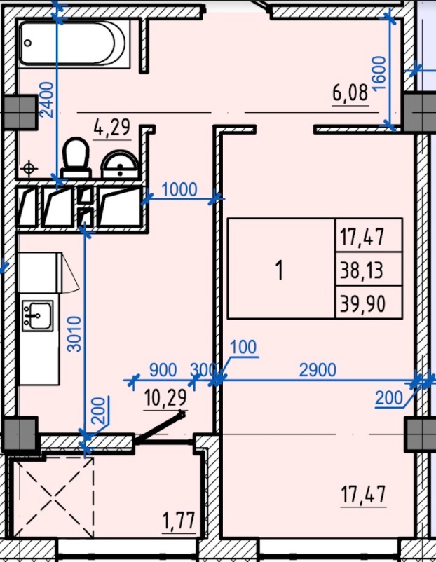 Загальна площа: 39.9 кв.м
