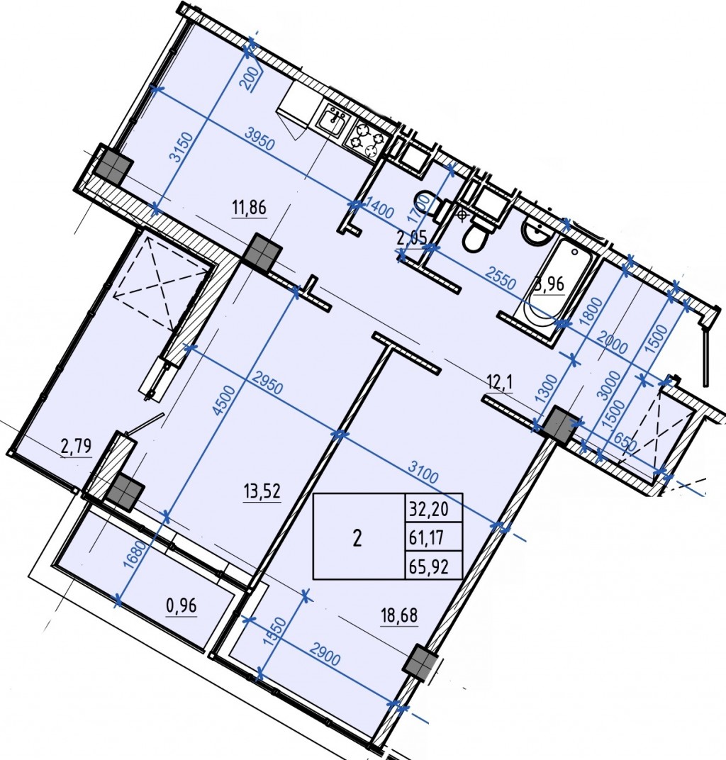 Загальна площа: 65.92 кв.м