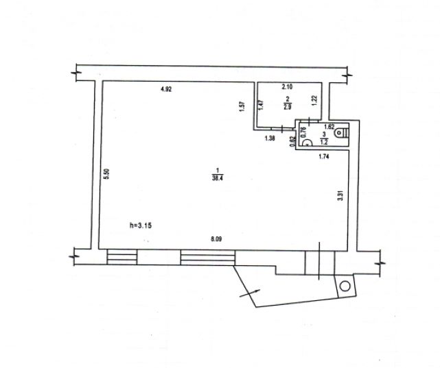 Характеристика помещения: - общая площадь – 42,5 м.кв; - зал- 38,4 м.кв; - бытовая комната – 2,9 м.кв; - санузел- 1,2 м.кв; - высота Н= 3,15 м; - перекрытие ж/б