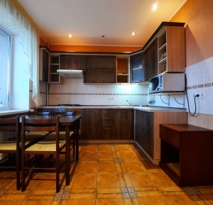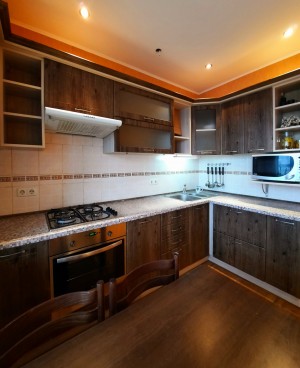 На кухне 13 кв. м остается вся мебель отличного качества со встроенной бытовой техникой: