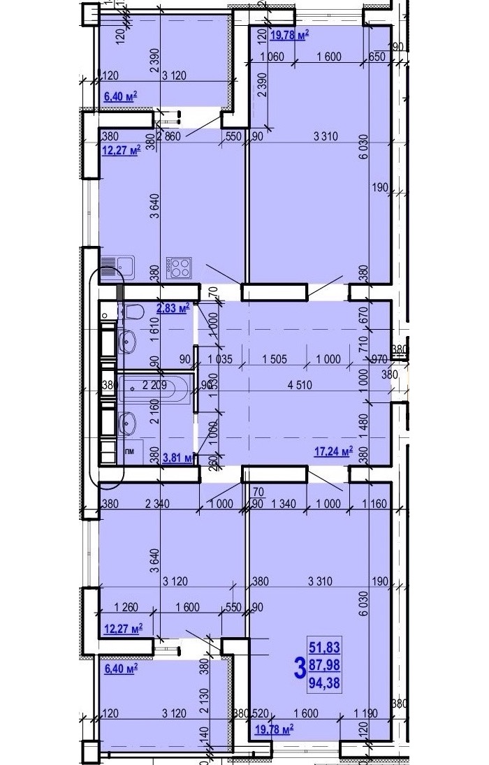 Загальна площа: 94.38 кв.м