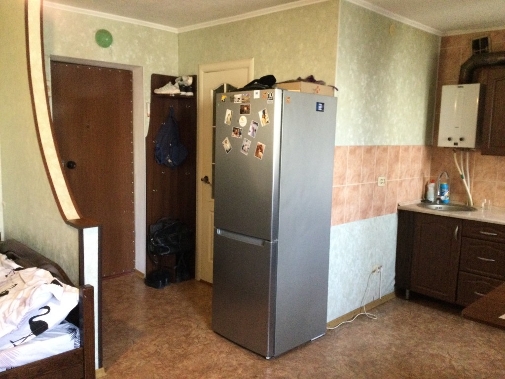 Продаю квартиру студию, Заводский район, улица Крылова, 4/5, дом кирпичный, малосемейного типа, 6 квартир в тамбуре. Есть балкон. Современный ремонт. Мебель частично остаётся.