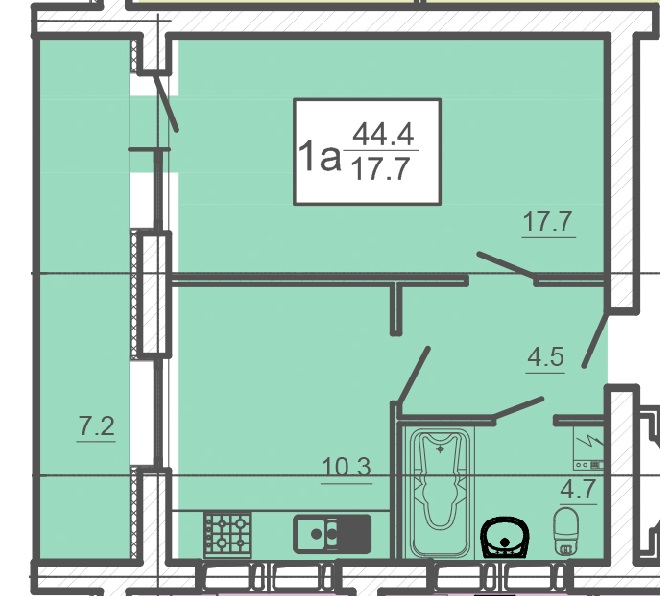 Загальна площа: 44 кв.м