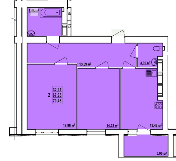 Загальна площа: 70 кв.м