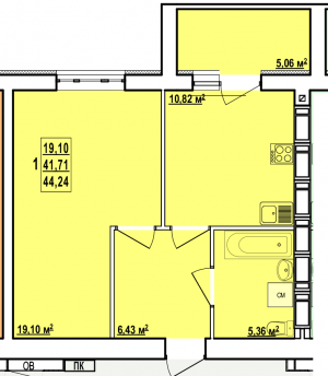 Загальна площа: 44.24 кв.м