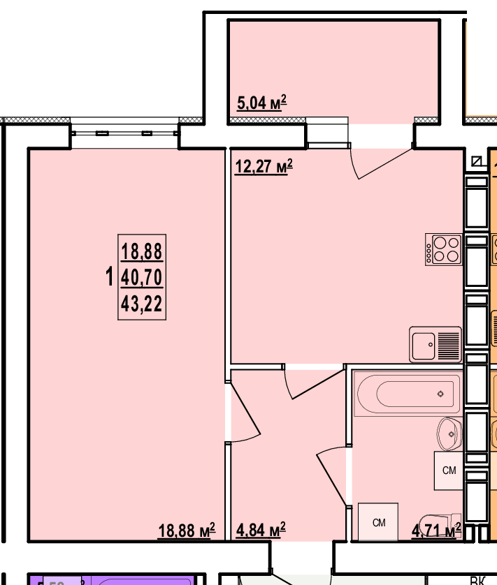 Загальна площа: 43.22 кв.м