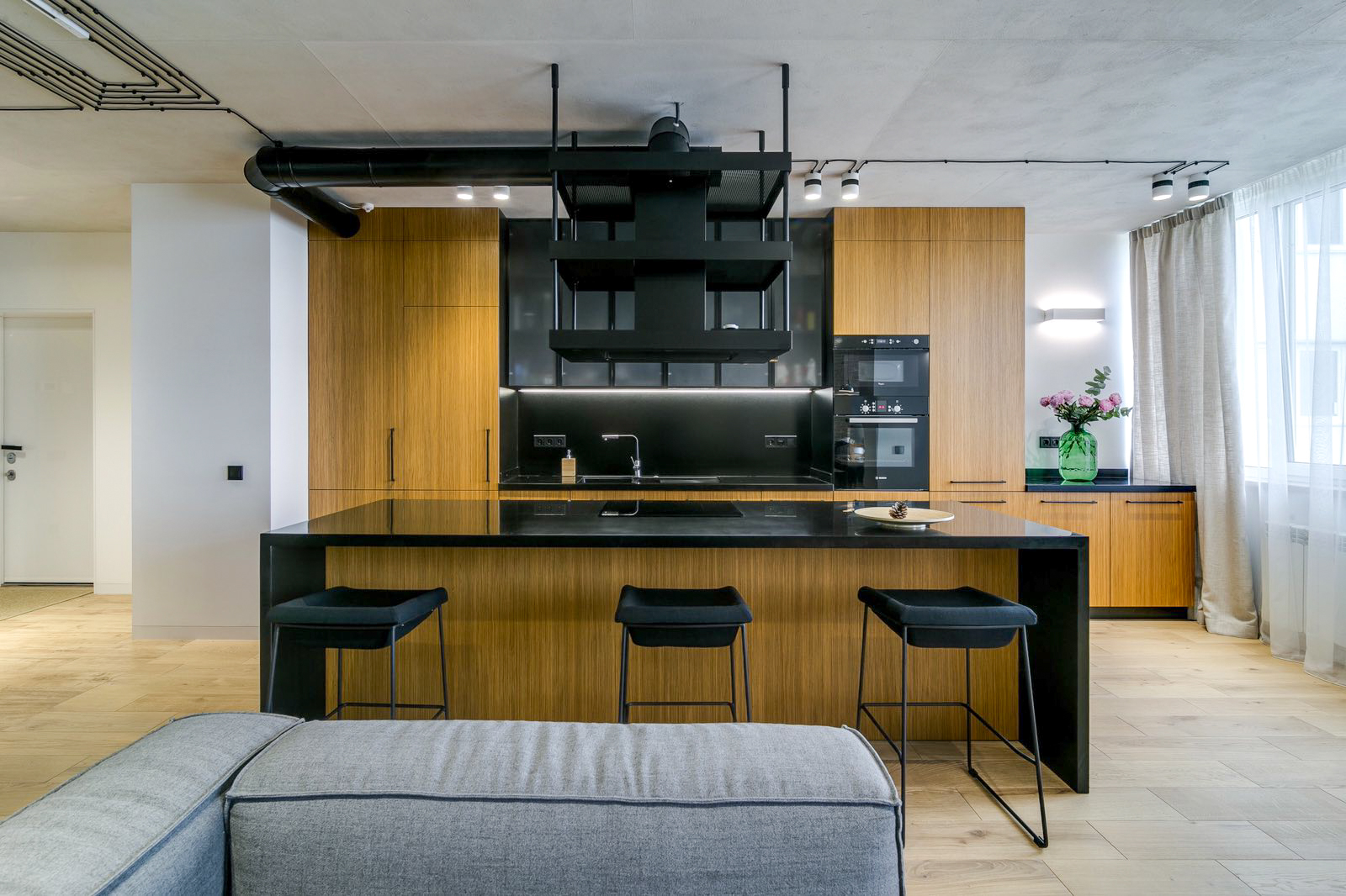 Отделка из премиальных материалов (дерево, камень, медь), уникальные элементы декора выполнены по эскизам.