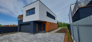 Парковка на две машины, и теплый гараж с автоматическими воротами на 2 машины.
