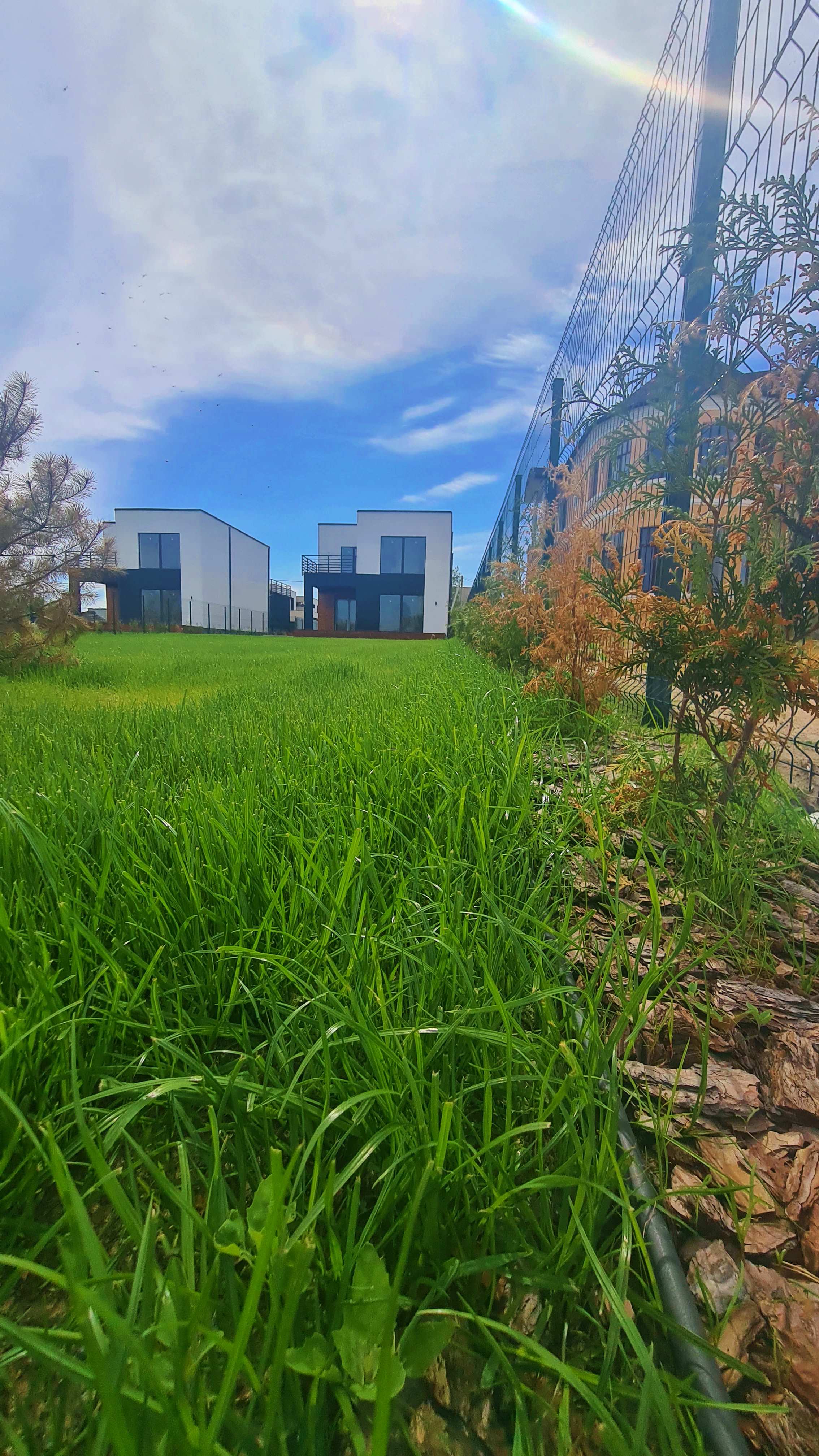 По фасаду ограждение забором с высаженными туями. Автоматические откатные ворота. Во дворе озеленение, авто полив и ландшафт. Сделаны ФЕМ дорожки.