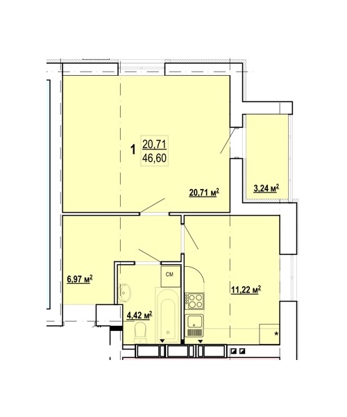Жила площа: 21 кв.м