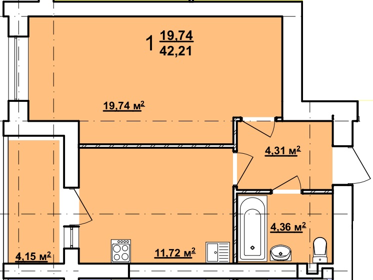 Загальна площа: 43 кв.м