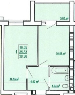 Загальна площа: 38 кв.м