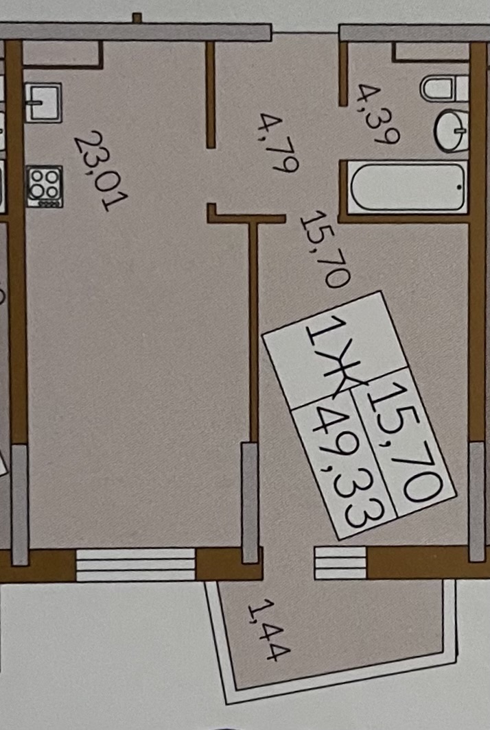 Идеальная планировка 49.33 кв.м. - кухня – студия (23 метра) и спальня, квартира не крайняя, будет тепло, идеально подойдет как для проживания, так и для перепродажи или перепланировании на 2 студии.