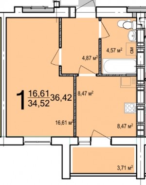 Загальна площа: 37 кв.м