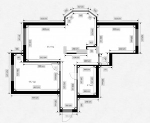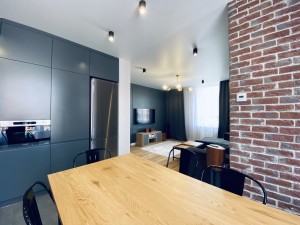 Квартира очень функциональная. Большая кухня-гостиная со столовой зоной, спальная комната, детская, есть кладовая.