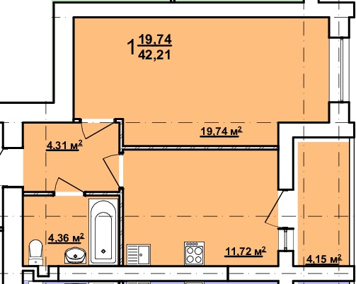 Загальна площа: 43 кв.м