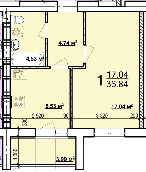 Загальна площа: 37 кв.м