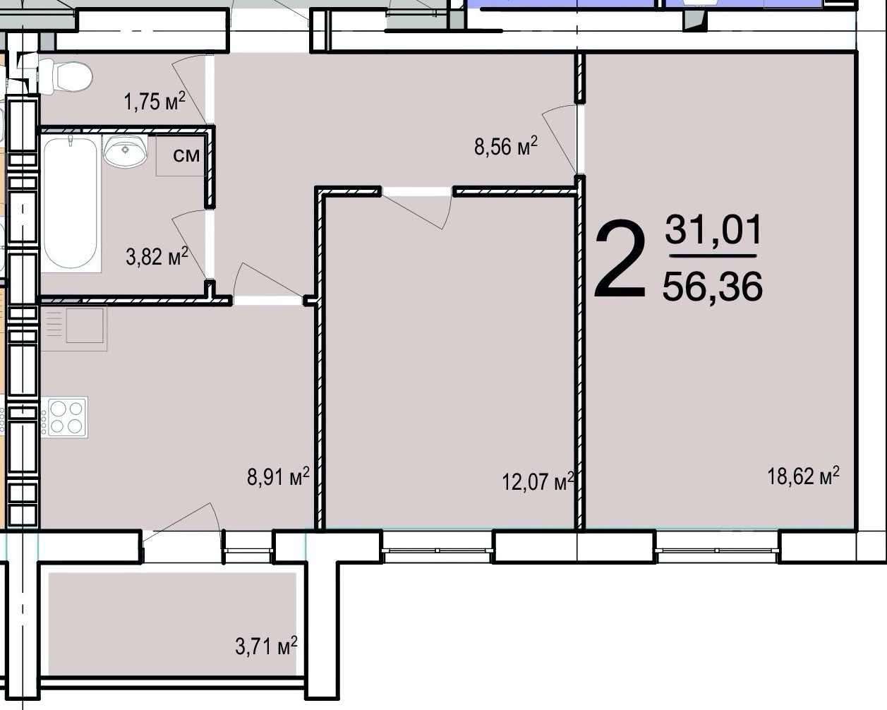 Загальна площа: 56 кв.м