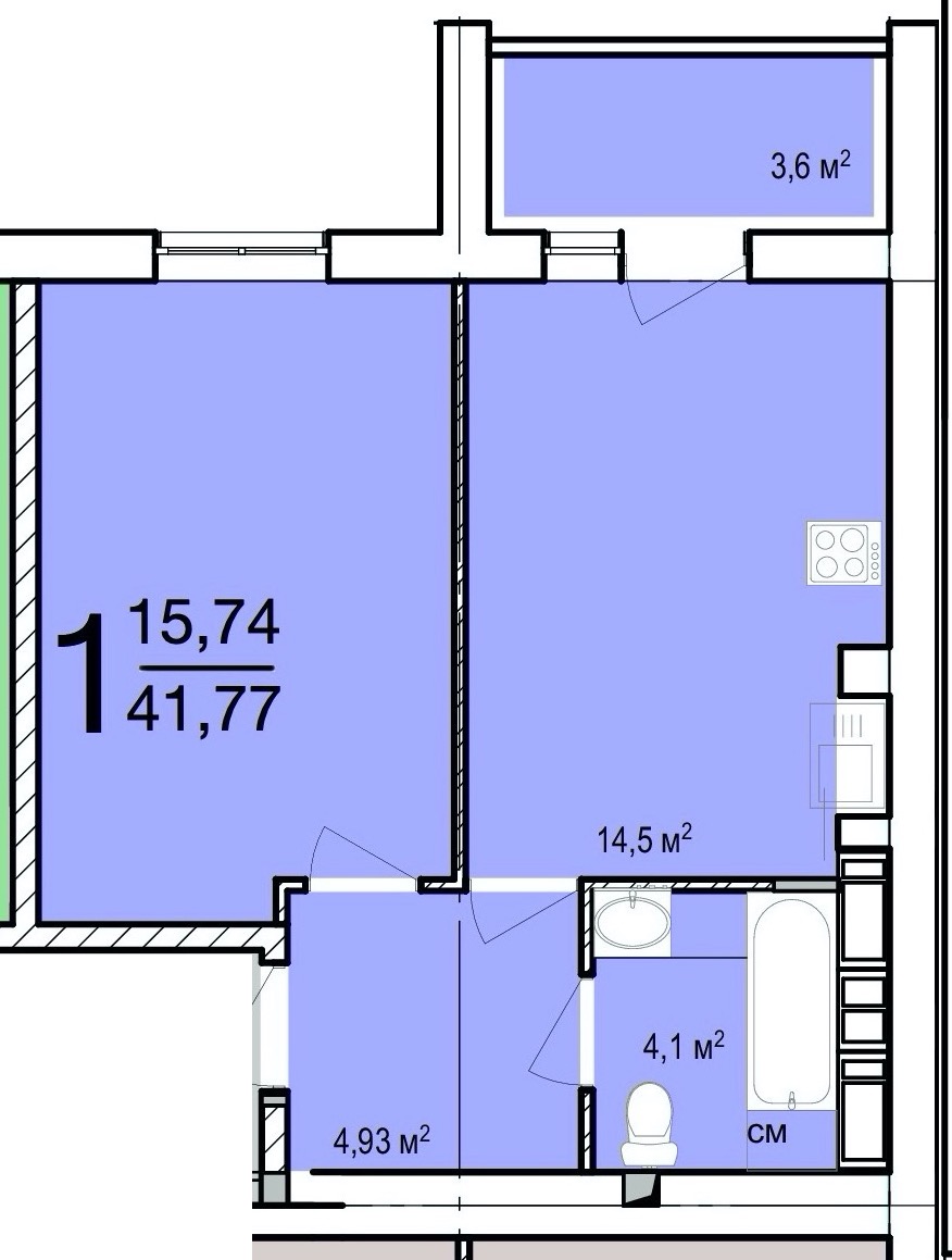 Загальна площа: 41 кв.м