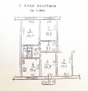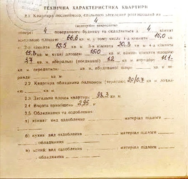 Квартира з високими стелями, загальною площею 100 м2, житловою площею 67 м2, кухні 15 м2.