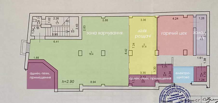 Загальна площа приміщення - 153,2м.кв.+ сходова і два технічні приміщення.