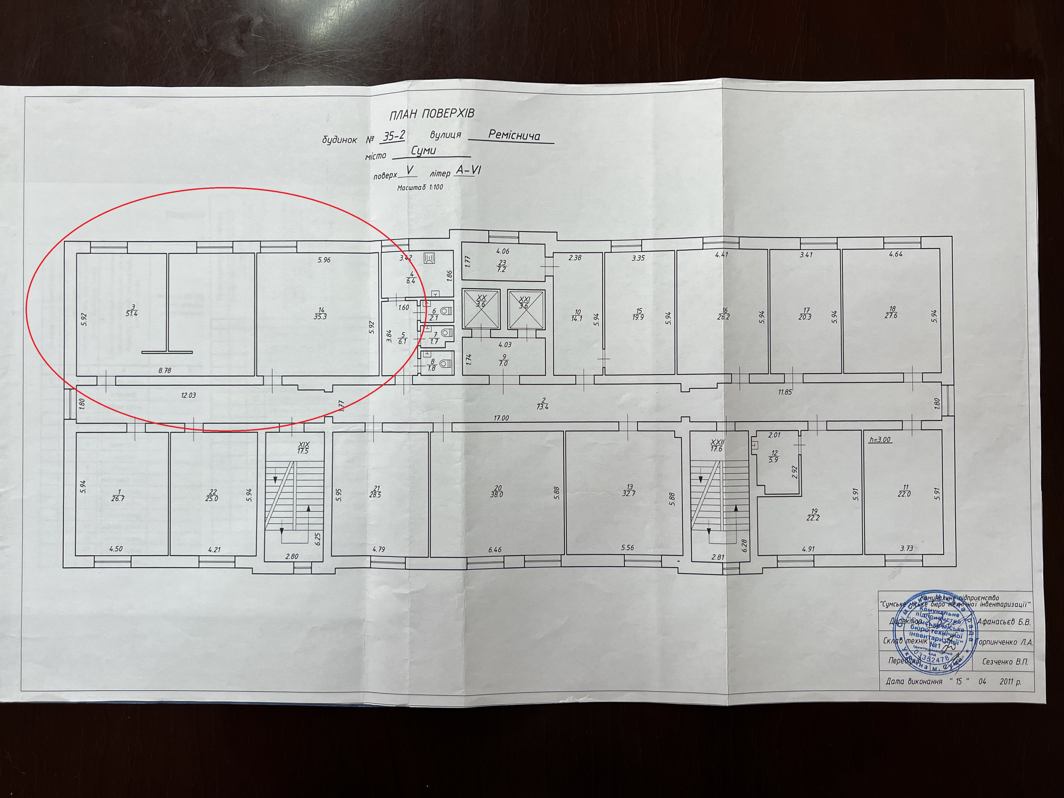 Приміщення розташовані на пятому поверсі шести поверхової будівлі.