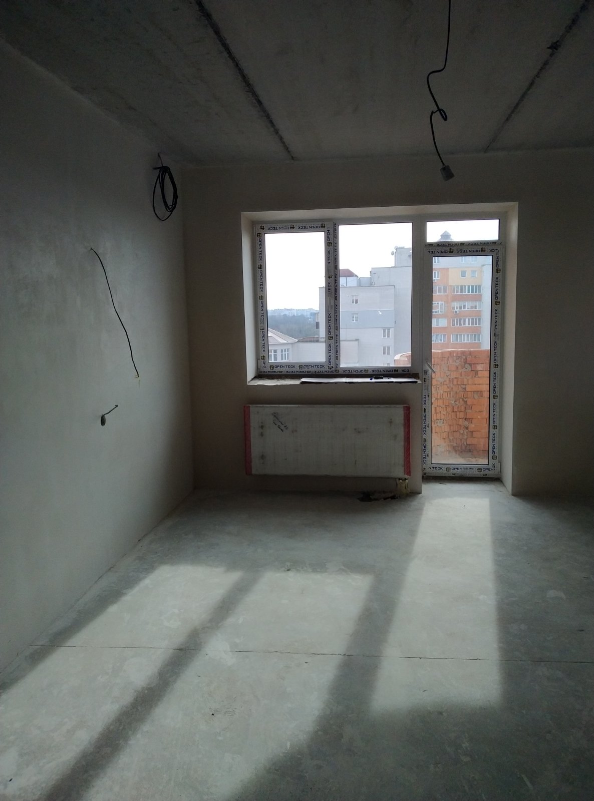 Стіни вирівняні (зроблено машинна стяжка), розведена електропроводка, зроблена сантехніка.