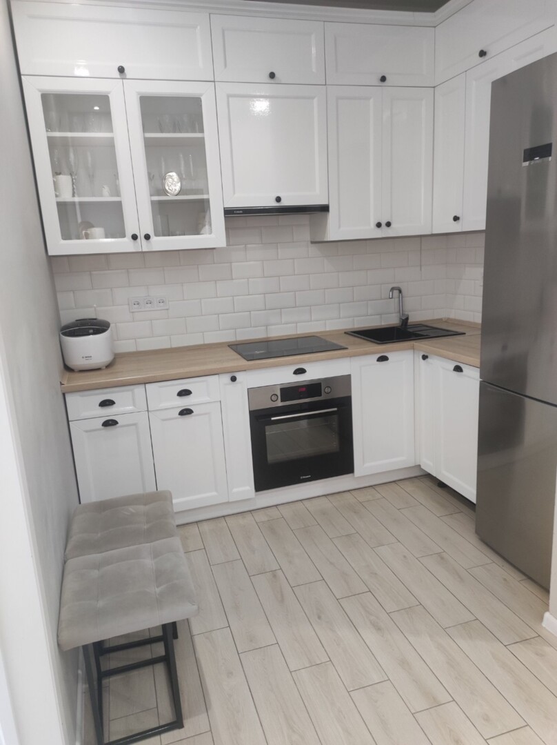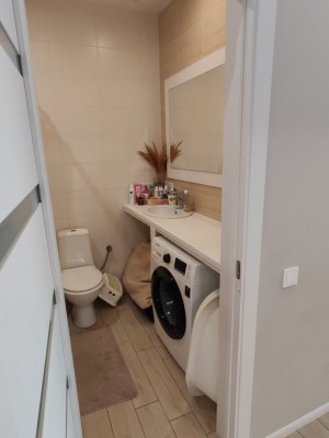 Квартира світла, затишна, не кутова.Кімнати ізольовані.Кухня з вмонтованою технікою: посудомийна машина, електрична духова шафа, електрична варильна поверхня, холодильник. Санвузол суміжний, ванна. Опалення газове (2-ох функційний котел), підігрів підлоги( ванна, кухня, коридор). Балкон відкритий.Будинок зданий та заселений. Є підвал площею 5м².