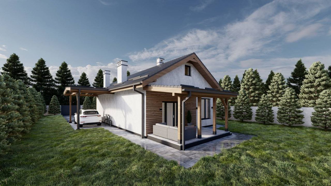 Площа будинку 111.7м2. Поверховість: 1 ( з можливістю підняти мансарду).