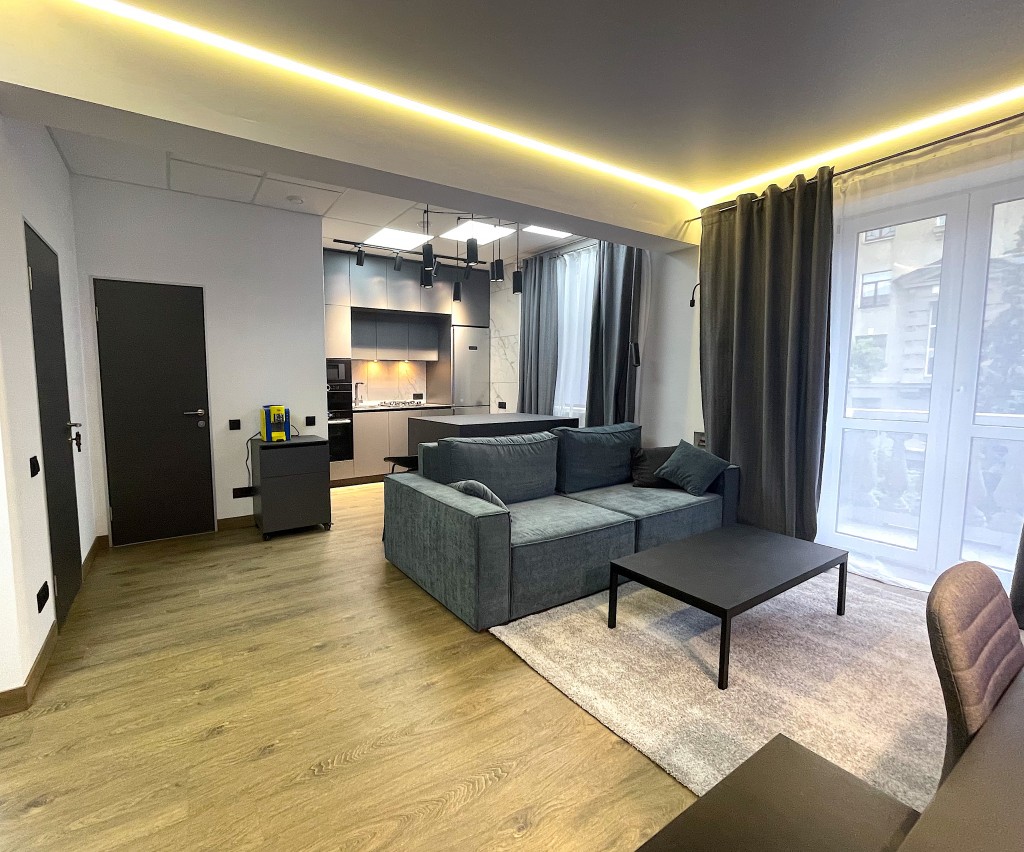 Загальна площа квартири складає 55м², і вона пропонує вам ідеальне поєднання: простору кухні-вітальні, величезної спальні, санітарного вузла та розкішного балкону з неймовірним, захоплюючим видом на бутікову зону міста.