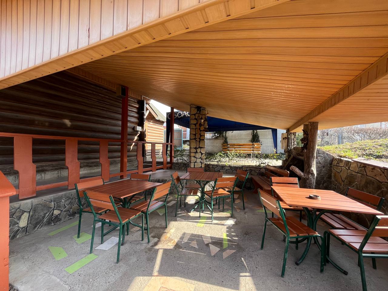 - на території розміщено сам магазин з складськими приміщеннями, нежитлове приміщення під іншу діяльність, озеро, літній майданчик