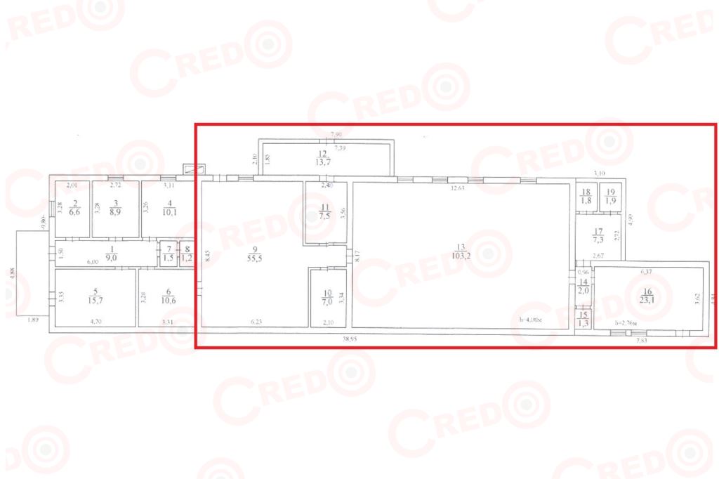 Планування об’єкту: Один торговий зал, центральний вхід з площі та загрузочний вхід зі сторони двору.