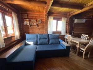 Будинок збудований з брусу, цього року повністю перефарбований. Три спальні кімнати. Дві спальні на другому поверсі, які мають виходи на спільний балкон.