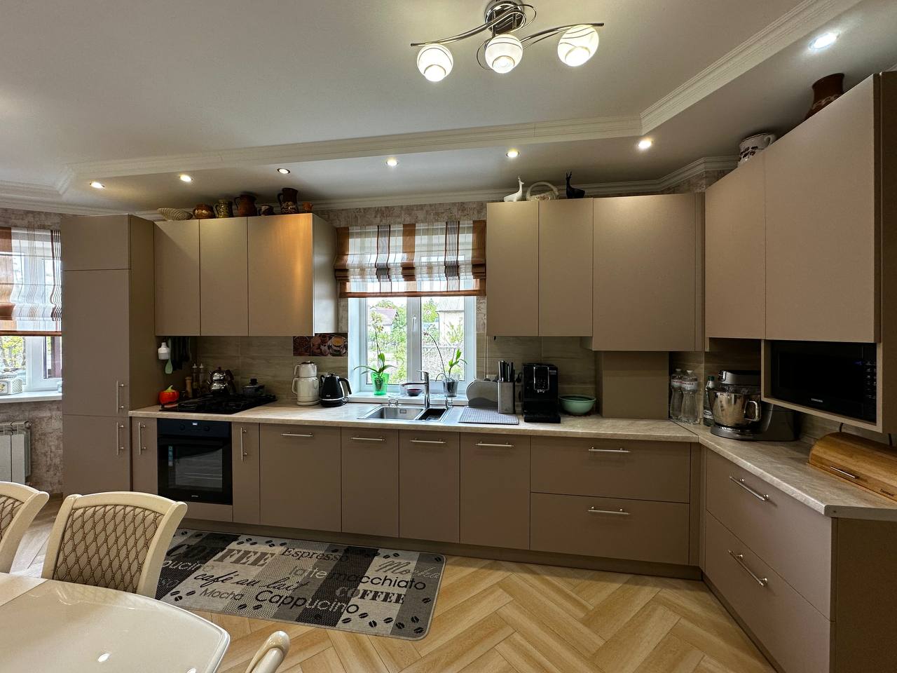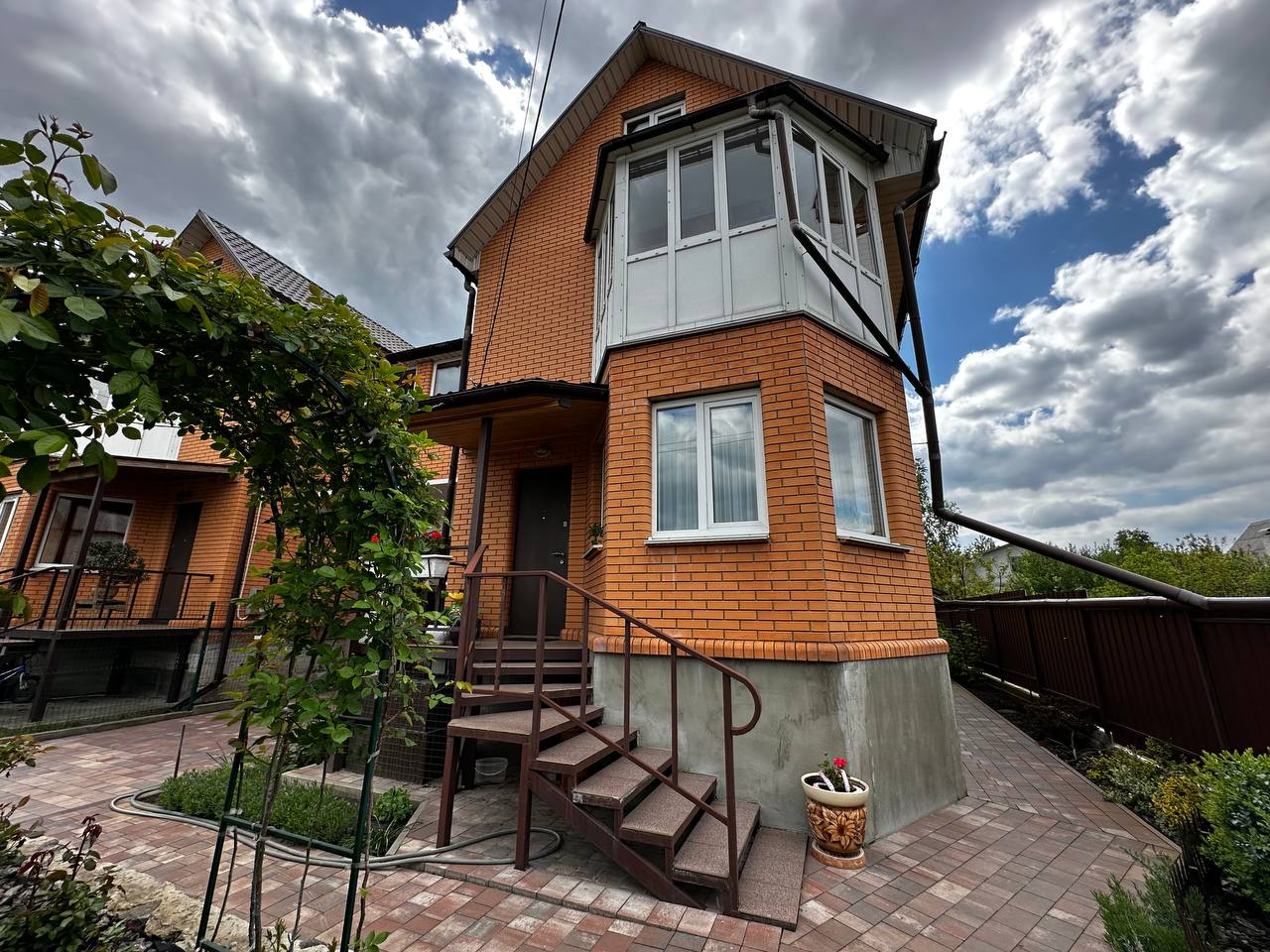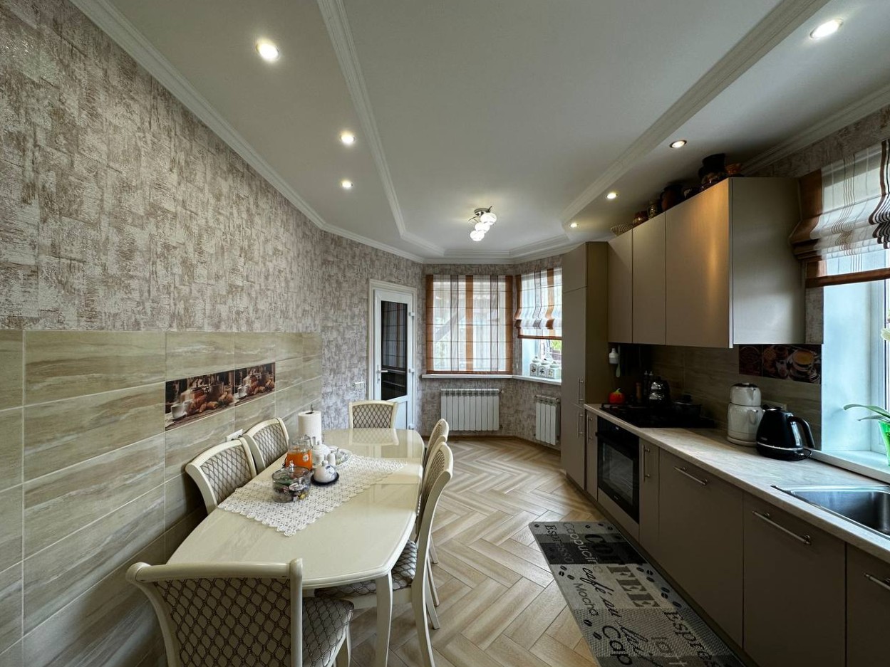 ID:600 Пропонується до продажу сучасний двоповерховий дуплекс площею 225,9м², розташований на затишній ділянці площею 4 сотки. Будинок має п'ять просторих житлових кімнат із роздільним плануванням, що забезпечує комфортне проживання для великої родини. На першому поверсі розташовані стильна кухня, затишна вітальня, а також санвузол з душовою кабіною. На другому поверсі знаходяться чотири спальні та ще один санвузол із ванною. Дві засклені лоджії додають додатковий простір і можливість насолоджуватися краєвидами в будь-яку пору року. Будинок збудований з якісних матеріалів і має сучасний ремонт. Він укомплектований добротними меблями та сучасною побутовою технікою, що дозволяє заселитися одразу без додаткових витрат. Підвал будинку розділений на дві функціональні зони: прохолодну комору для зберігання запасів і надійне укриття. У гаражі, оснащеному автоматичними воротами, проведено світло та воду. На території будинку також є чудова тераса для літнього відпочинку, зона для барбекю, невеликий господарський двір та сад. Будинок підключений до всіх необхідних комунікацій: природний газ, водопровід, газовий котел для опалення та гарячої води. Цей дуплекс - ідеальний вибір для тих, хто цінує комфорт, якість і спокійне життя в затишному районі.