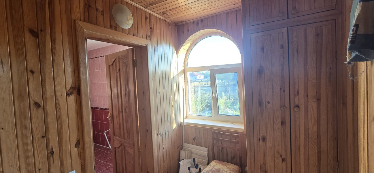 Продається 2/3 житлового будинку 10км від Житомира, на початку с.Садки, Житомирського району. Загальна площа 66м.кв., 2 земельні ділянки 7,5+24,2 сотки приватизованої землі. Нова узаконена прибудова коридор-4м.кв., санвузол-5,6м.кв. (залишилось тільки встановити сантехніку), кухня-15,3м.кв., гостьова 12,3м.кв., та 2 кімнати в дерев'яній частині 13+16м.кв.. Вода заведена в будинок, є криниця, вигрібна яма, світло 3 фази, поряд газ, грубки. В будинку зроблений ремонт, залишаються кухонні меблі. Окреме велике подвір'я, погріб, капітальний сарай на 2 секції, асфальтований під'їзд. Поряд проходить автобус, до АТБ 5 хвилин пішки. Документи готові до оформлення.