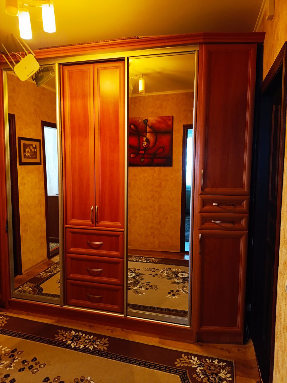Бойлер, вытяжка, кондиционер. Натуральная деревянная столярка. При входе в холл есть дополнительная площадь - прихожая (тамбур).